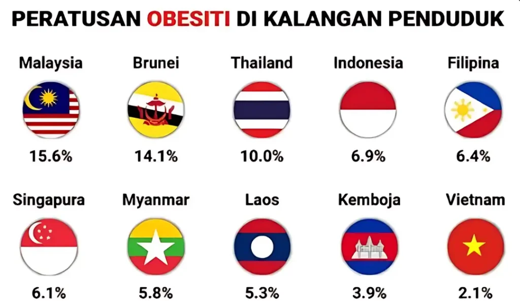 Sangat membimbangkan bila statistik menunjukkan Malaysia mempunyai kadar obesiti PALING TINGGI DI ASEAN.