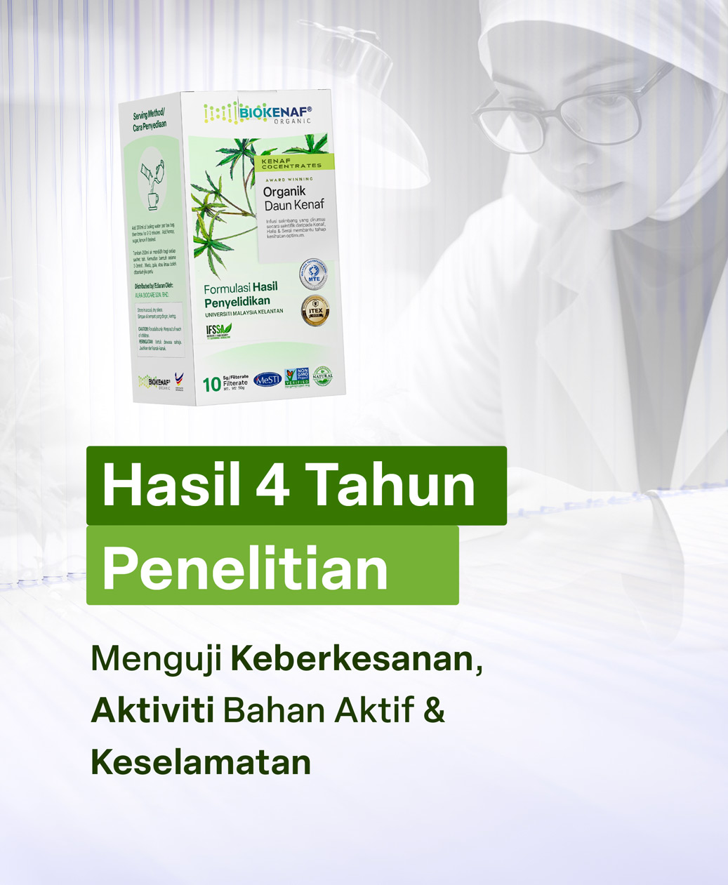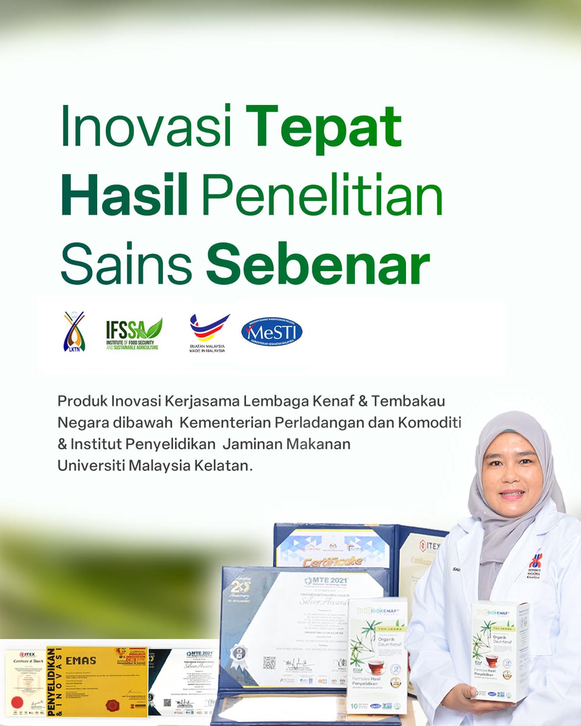 Usaha Saintis, Dr. Maryana Buktikan Formulasi Campuran Tepat Antara Daun Kenaf, Serai & Halia Tunjuk Peningkatan Keberkesanan Sehingga 24x Bantu Rawat Masalah Obesiti & Kolesterol – Raih Pelbagai Pingat Emas di Expo Teknologi dan Inovasi Malaysia.